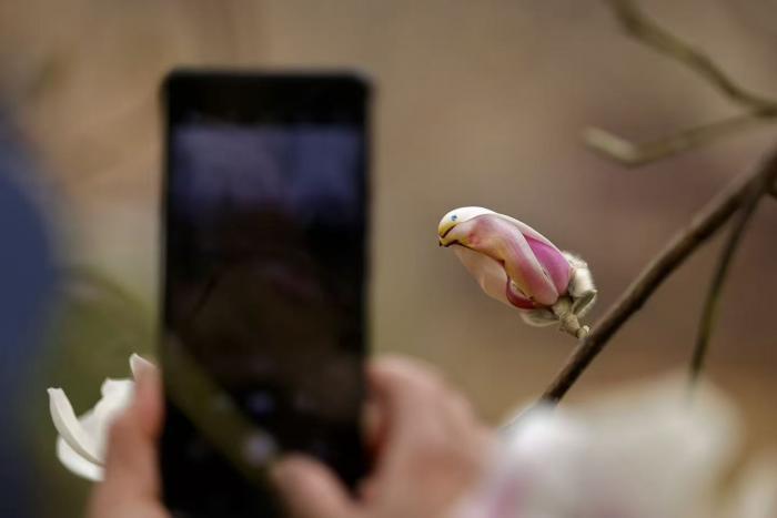 近日,北京雕塑公园内的玉兰花意外走红,不少花苞因独特形态酷似小鸟,被市民亲切称为“小鸟”玉兰,吸引大批游客前来打卡拍照。